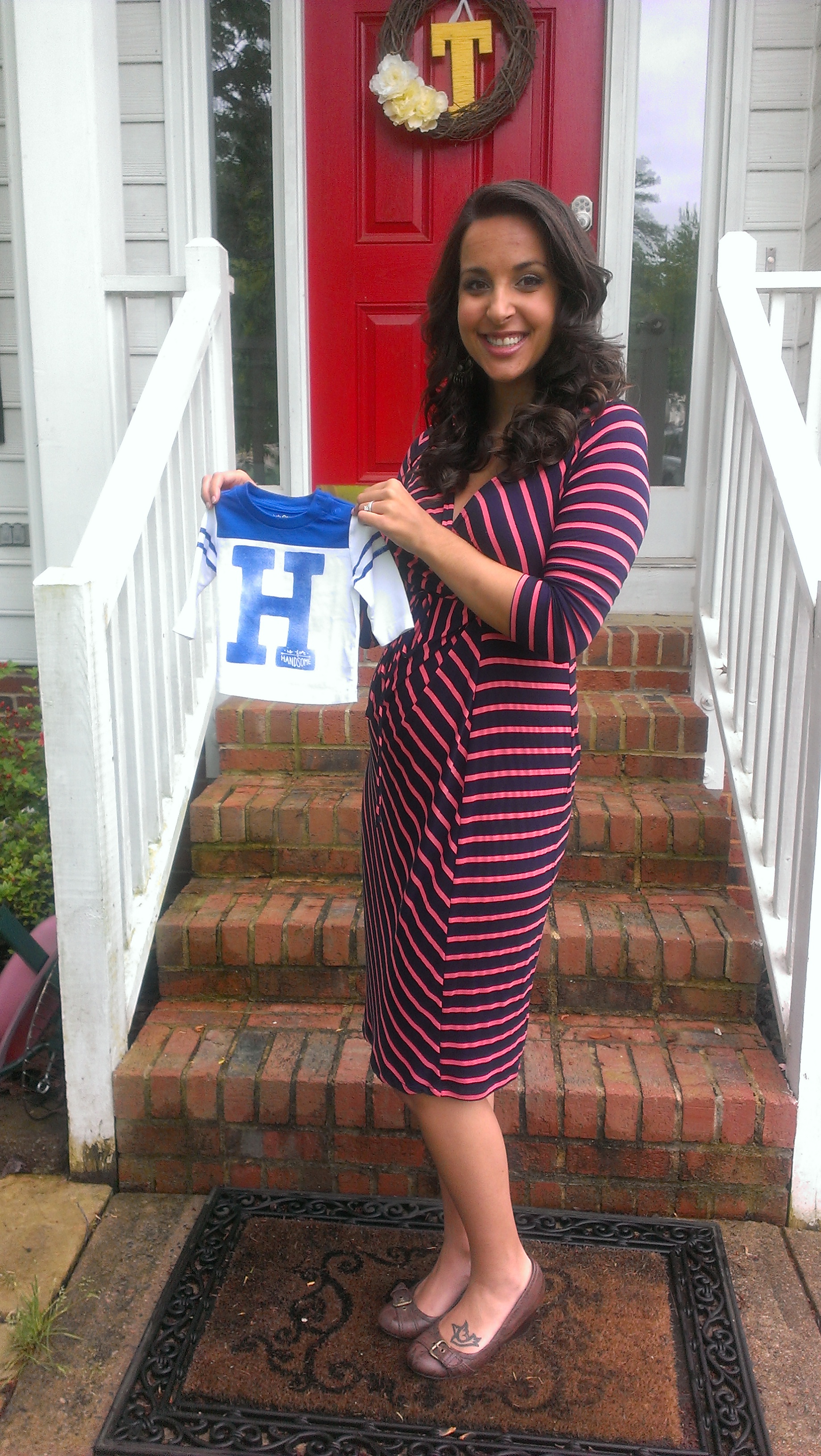 After we found out the gender, we had decided from the start that we would go buy the bringing home outfit right after. We went to Babies R Us where I had started our registry online (talk about overwhelming!!) and started browsing. Talk about disappointed. We found some onsies we liked and got them but decided to head to the mall to try and find something we really loved. I’m obsessed with baby Gap, I mean how can you not be?!? Well, talk about perfect timing. Their clearance was also 40% off. We ended up buying 5 outfits for $20 bucks!!! Love love love.